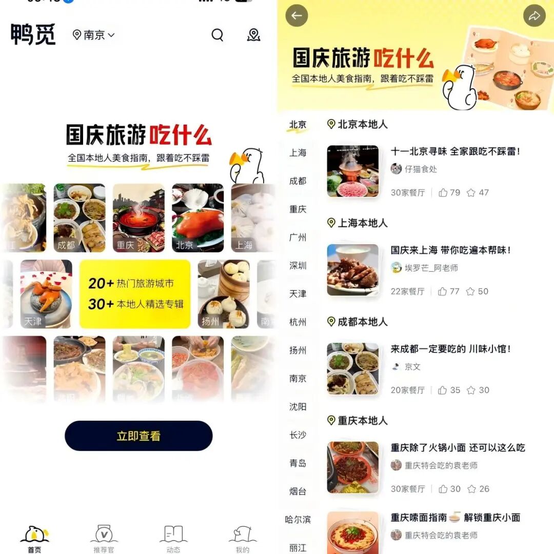 财经无忌了解到,定位为“小众点评”的鸭觅也会有自己的榜单产品,其国庆推出的“本地人美食指南”专辑内容也已具备榜单的初级形态。