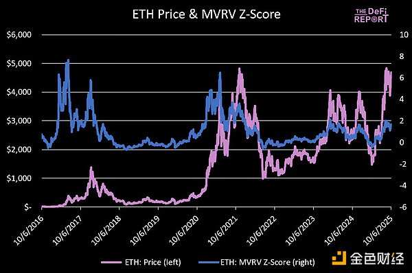 📈 MVRV Z-Score当前为1.66,高于历史平均水平,但并非过度'过热'。在之前的周期中,Z-Score在顶部时达到6.5和3.48。如果Z-Score上升到3.33,ETH价格可能达到9000美元。