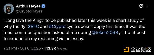 数据来源:The DeFi ReportETH/纳斯达克比率在21年5月达到0.31的峰值,在21年11月达到0.30的峰值。当前比率为0.20,纳斯达克指数交易于22,788点。如果到年底它上涨5%(全年上涨23%),这将使纳斯达克指数达到23,927点。ETH情景分析:· 0.25 比率 = 5,981美元· 0.30 比率 = 7,178美元· 0.35 比率 = 8,374美元· 0.40 比率 = 9,570美元我们的基本理由是,随着新周期,ETH/纳斯达克比率上升的趋势将持续,并且我们在本周期将确立一个新的高点(高于0.30)。结语我们预测,基本情况:· ETH交易价格比其200周移动平均线高250%(8500美元)· 已实现价格达到3千美元(ETH 8700美元,假设比率为2.9)· ETH达到BTC市值的35%。在BTC 15万美元时,这使ETH达到8600美元。· ETH相对于纳斯达克指数确立新的高点。0.35比率 = ETH 8300美元。看涨情况:将使ETH达到1万美元以上。看跌情况则是BTC的见顶走势蔓延至ETH,导致峰值温和。与此同时,随着市场情绪升温,我们看到市场上出现越来越多关于"周期延长"的评论。这让我想起了在21年周期相同阶段开始流行的"超级周期"说法。