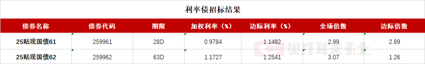 一级市场方面,国开行3年、7年期金融债中标收益率分别为1.72%、1.9953%,全场倍数分别为1.49、4.01,边际倍数分别为1.14、3。财政部28天、63天期国债加权中标收益率分别为0.9784%、1.1727%,边际中标收益率分别为1.1482%、1.2541%,全场倍数分别为2.99、3.07,边际倍数分别为2.89、1.26。