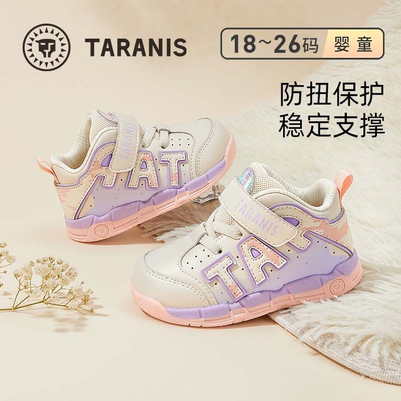 泰兰尼斯推出适合男女宝宝的秋季童鞋,这款鞋既是篮球鞋也是运动鞋,有着包头防踢的设计,属于机能鞋,能很好地保护宝宝的小脚丫。