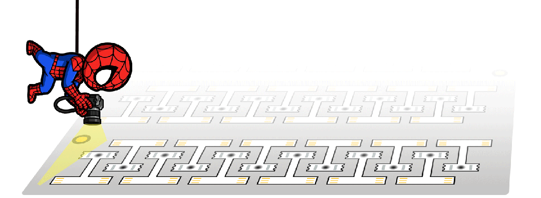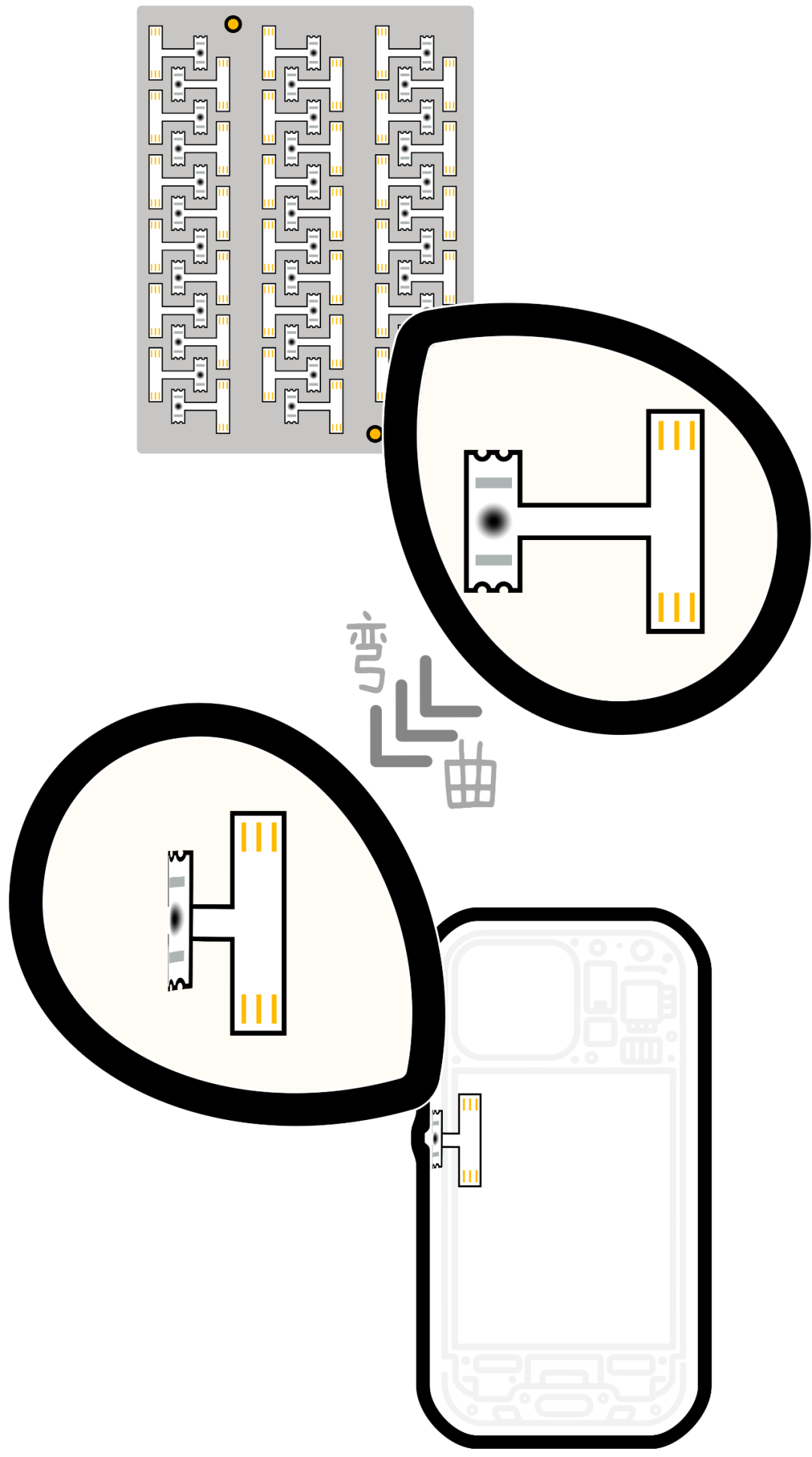 他包里塞着几张 A4 纸一样的“软电路板”,上面密密麻麻地排列着上百个相同的小器件。