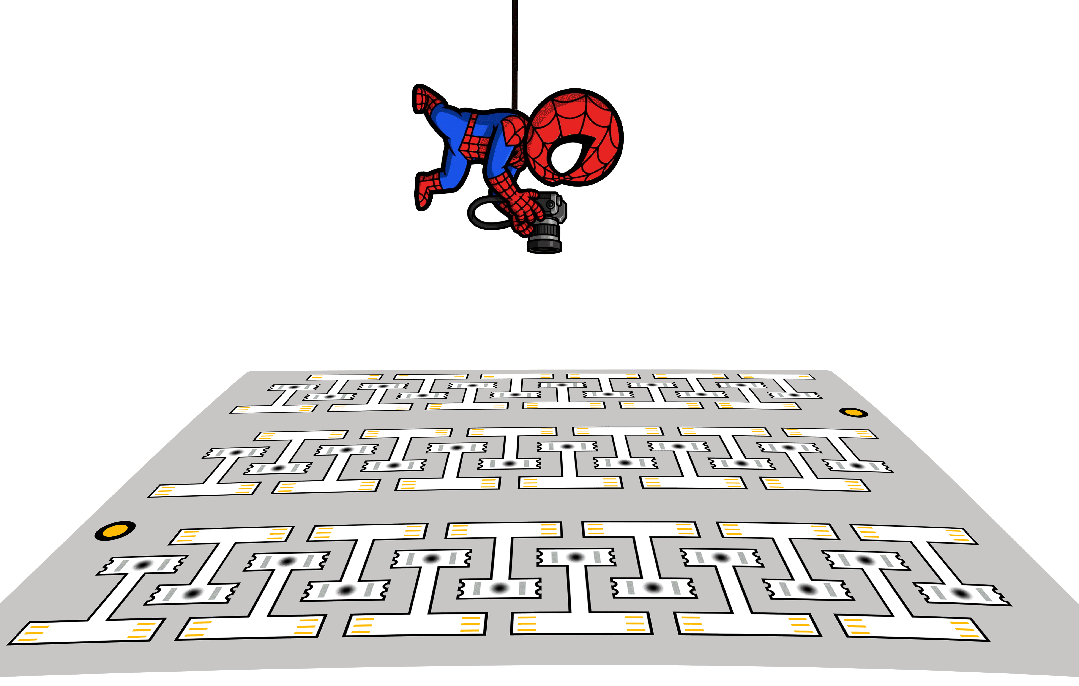 这么大一个整板,铺平之后,会有一个相机对它进行拍照,识别出两头的两个“定位孔”,然后通过计算得出中间所有元器件的位置。点胶头根据这个结果去相应位置点胶。