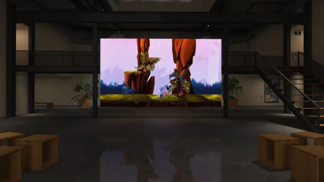 扩展式播放的 2D 视频内容会以独立窗口的形式,在 Apple Vision Pro 的环境中占满整个窗口播放;如果开发者为自己的 app 使用了 Apple 官方提供的 Reality Composer Pro 或 AVKit 开发工具,扩展式播放窗口还可以切换至「悬停状态」停靠在 visionOS 空间中的指定位置,此时窗口位置、大小不可调整,环境会根据窗口播放内容实时模拟呈现窗口屏幕在环境中的动态光线反射效果,类似虚拟影院的感觉。