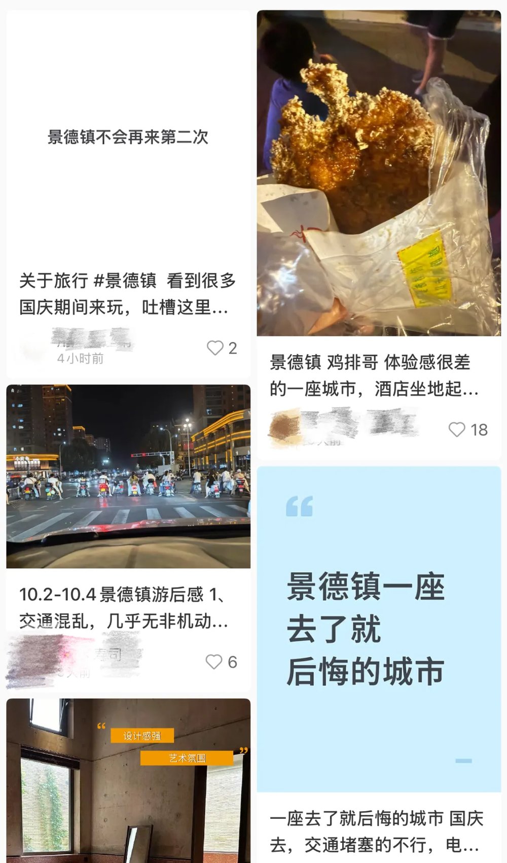 查询社交媒体平台上对景德镇的“吐槽”不难发现,游客们的抱怨非常集中:交通拥堵不好打车、商业化太过严重、城市卫生环境差,旅游承载力不行等等。