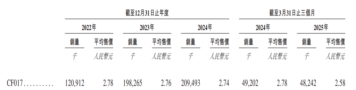 目前,国产布地奈德混悬液的集采单位定价一般在2-3元左右,且有下降趋势。比如,招股书显示,2022-2024年及2025年一季度,CF017的平均售价分别为2.78元、2.76元、2.74元及2.58元,但销量增速则有明显放缓。随着单品依赖的风险愈发突出,长风药业加速其他产品的商业化迫在眉睫。