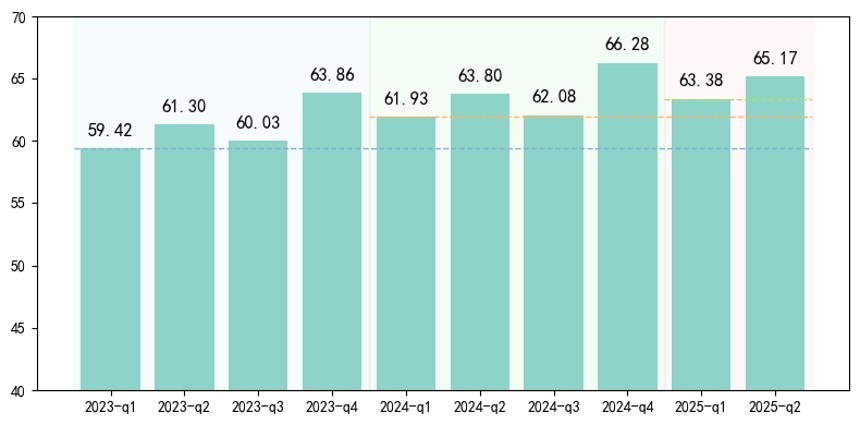 数据显示,消费者购买品质品牌商品的趋势继续增强,从2025年一季度的63.38增加到二季度的65.17。淘宝、京东、拼多多、快手、抖音在供应链深度、数据精准度、用户信任度上陆续建立护城河,其中,2025年,淘天集团在商品抽检上预算同比增长100%。