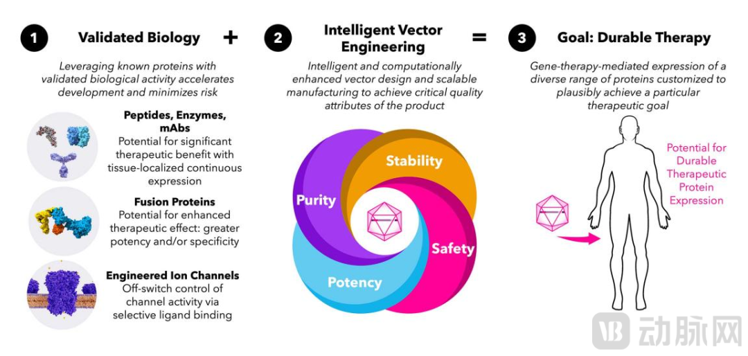 技术上,平台以“验证过的生物学+智能载体工程”为核心:通过AAV基因治疗实现蛋白质的长期表达,减少患者频繁给药负担;利用融合蛋白和工程化离子通道提升疗效与组织特异性;并依托自主研发的SIRVE系统,结合机器学习和深度生成模型优化AAV载体的稳定性、可制造性和组织靶向性。