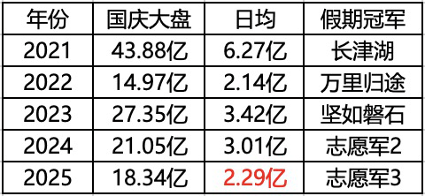 其实今年国庆档的表现令人震惊的地方不在于低迷,因为低迷是预期之内的,而是下滑,尤其是系列电影的下滑。不论是《志愿军3》还是《刺杀小说家2》,都是有着明确对比的。拿《志愿军3》来说,该电影可是三年连上三部,有着稳定的受众,内容品质也保持稳定,但依然较前作下跌了一半,这才是最可怕的。