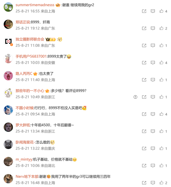 这是什么概念?它的上一代,六年前发布的GR3,首发价是6199元。六年过去,同一系列,价格暴涨45%。评论区的画风也是清一色的不可思议。
