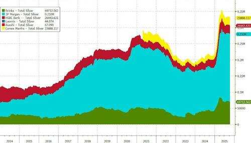 此外,LBMA库存在第一季度因美国关税相关进口激增而已处于紧张状态。尽管中国净出口仍保持强劲,同比增长241%,但在1.01亿盎司出口量中,9990万盎司流向了香港,这部分供应处于LBMA体系之外。