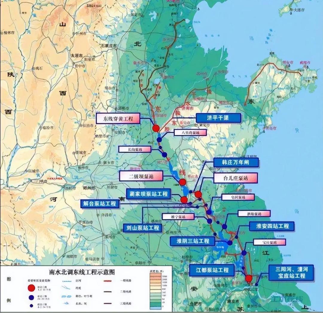 沿着东线,江水从长江中下游出发,一路北上滋养华北平原,中途需穿越一段丘陵地带。沿线最高点山东东平湖的海拔,比起点扬州高出40多米。