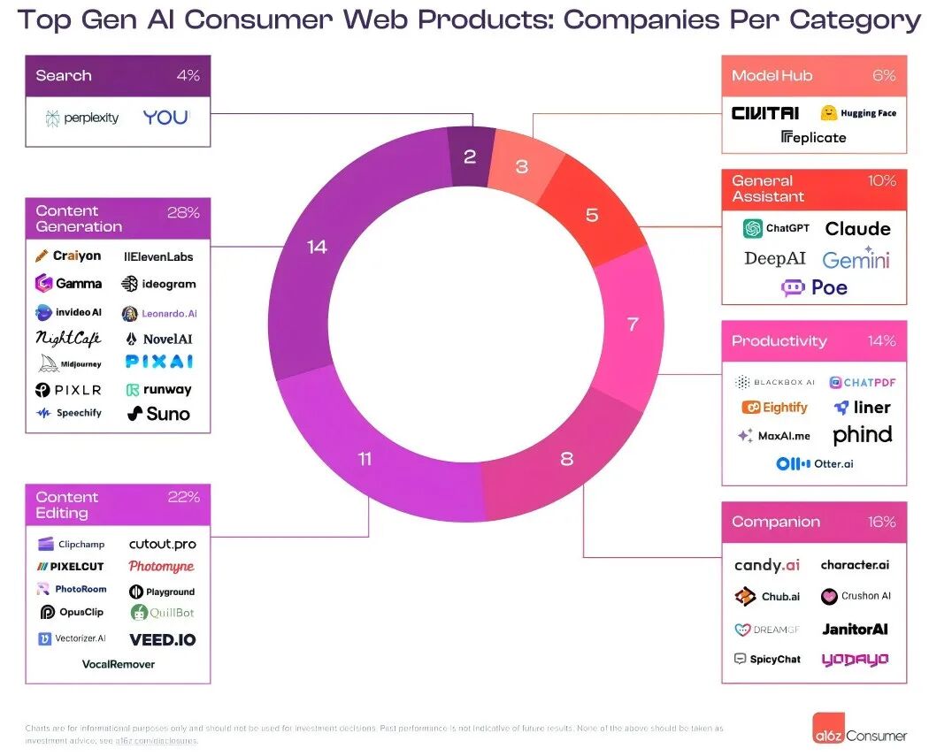 2024年,a16z在当年3月发布的报告指出,AI陪伴已成为主流,有10家产品入选「全球最火的50个AI应用」榜单,如Poly.AI、Crusho.AI、Janitor.AI、candy.ai、SpicyChat.AI、DreamGF.AI、Chub.ai等。