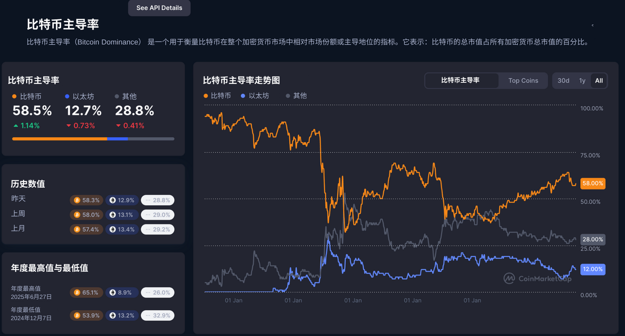图表来源:CoinMarketCap,比特币主导率走势图(https://coinmarketcap.com/charts/bitcoin-dominance/)