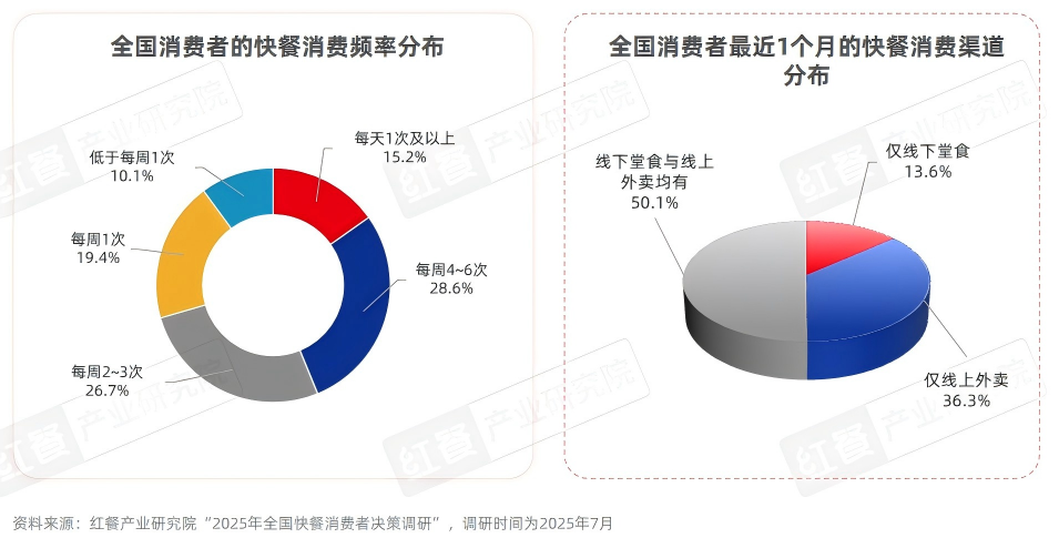 红餐产业研究院“2025年全国快餐消费者决策调研”显示,每周至少消费2次快餐的消费者占比为70.5%,每周至少消费1次快餐的消费者占比接近九成。