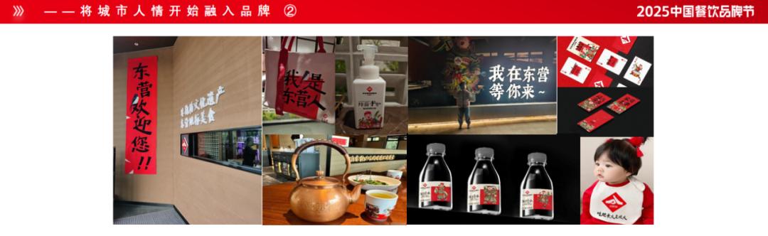 第三步,将城市战略融入品牌,我们做了城市风味体验。村长家的疙瘩汤以前主打疙瘩汤单品,现在我们要做一座城的风味,告诉顾客东营也有自己的风味。还有包厢文化,比如包厢命名,我们把以前的“二十四节气“包厢,换成了这座城的”历史痕迹——东营胜利油田以前的工厂编号,及东营的人文、景色、精神形成了包厢名。