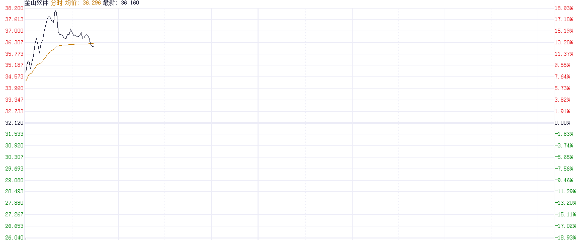 财联社10月13日讯(编辑 胡家荣)受市场利好刺激,在港股上市的金山软件(03888.HK)今日大幅走高,且盘中一度升超18%。截至发稿,涨12.95%,报36.28港元。