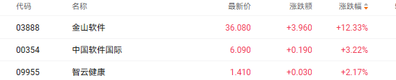 同期的软件概念股表现积极。截至发稿,中国软件国际(00354.HK)涨3%。
