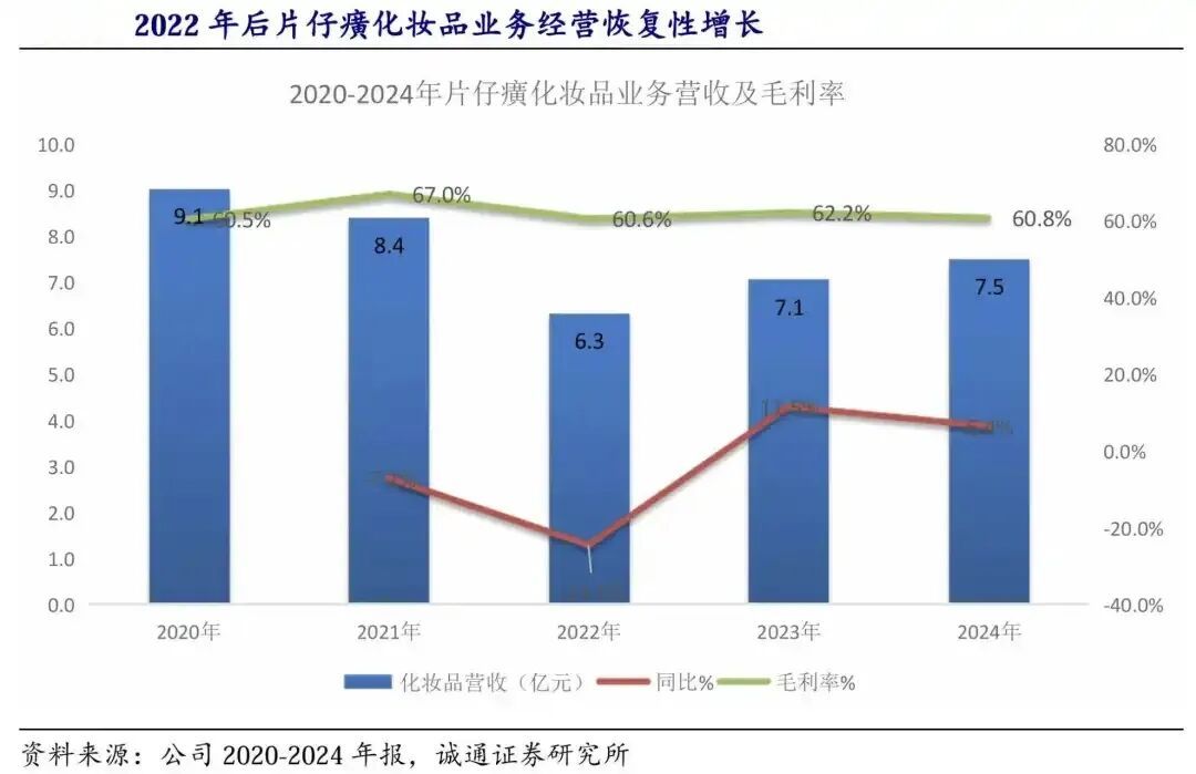 2020年至2024年片仔癀化妆品业务一览,截自诚通证券研报