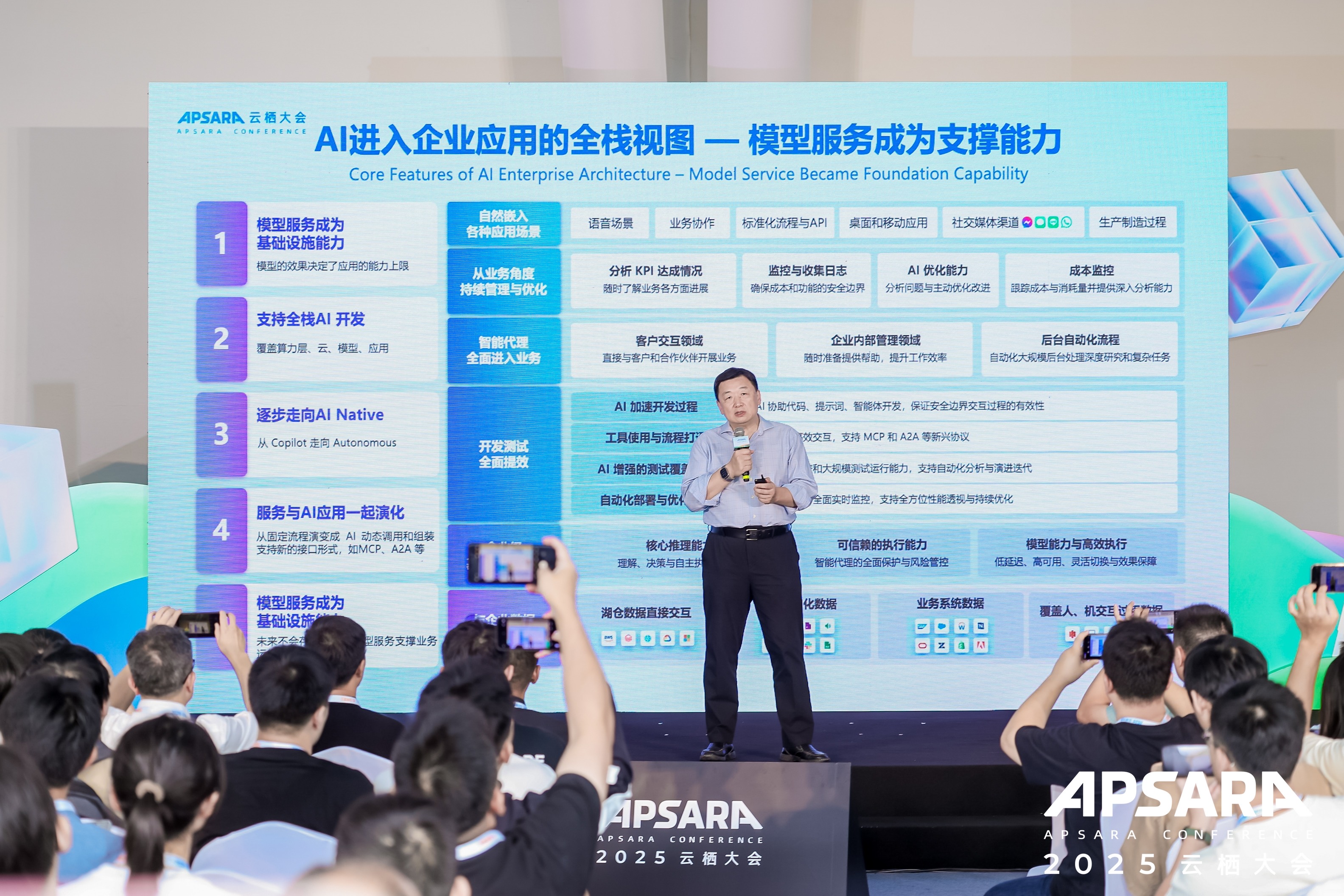 在AI技术架构的全面升级层面,传统架构已到极限,软件的复杂性和数据规模都在指数级增长,人工规则式的系统越来越难适应变化,AI原生架构能以更低的边际成本处理更复杂的任务。过去企业拼的是执行力,现在拼的是“智能密度”,谁能让AI更好地理解业务,谁就能跑得更快。