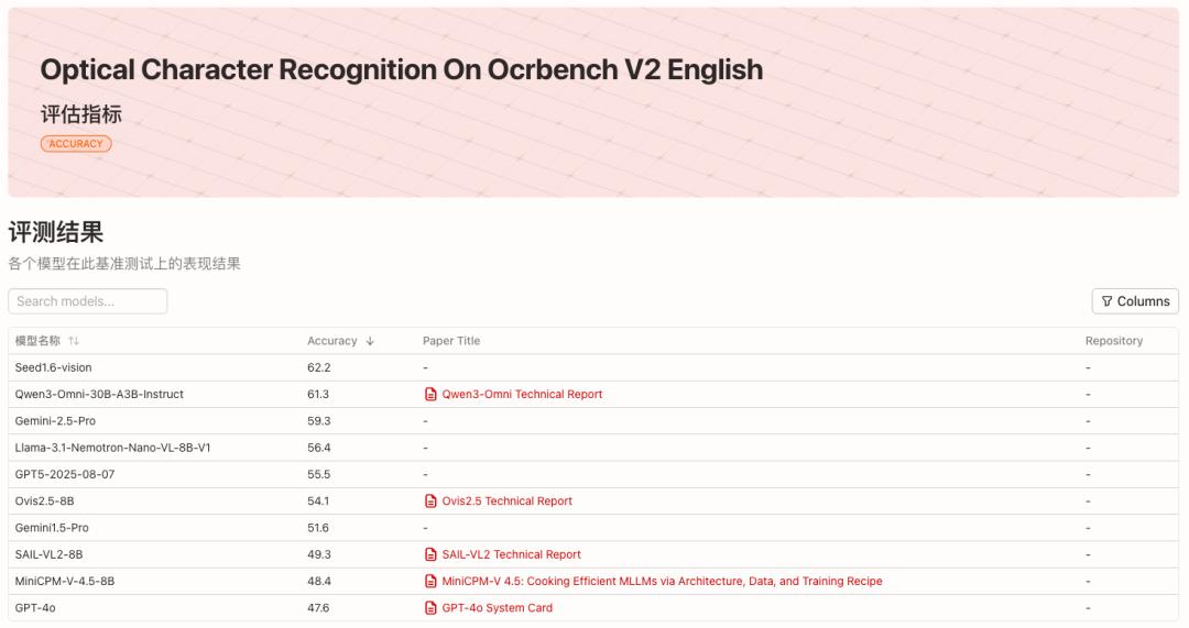OCRBench v2 榜单将按季度更新,HyperAI 也将持续追踪最新的评测结果。