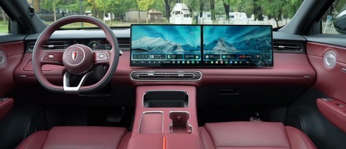 内饰进阶:人性化设计与科技美学并重进入车内,红旗HS6 PHEV的内饰设计同样令人印象深刻。怀挡设计的引入,不仅优化了中控区域的布局,更提升了驾驶操作的便捷性与安全性,体现出红旗对用户日常使用习惯的深度洞察。与此同时,全系标配的双联屏以其更纤薄的造型融入中控台,视觉效果更加简约美观的同时,也大大提升了科技感。
