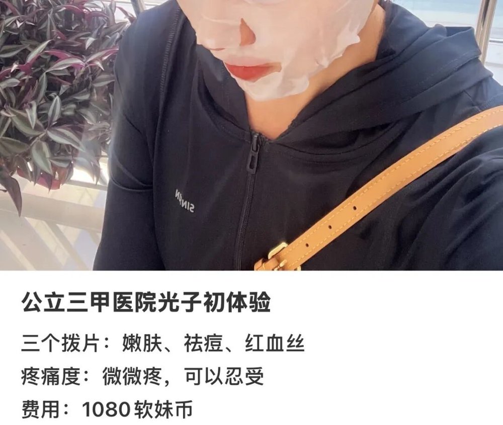 柚子一开始还觉得,护肤去美容院就行了,没必要专程去皮肤科,毕竟这里的项目虽然能用医保余额,但也比外面贵很多。但他周末去朝阳区逛了个美业展后,就彻底老实了。