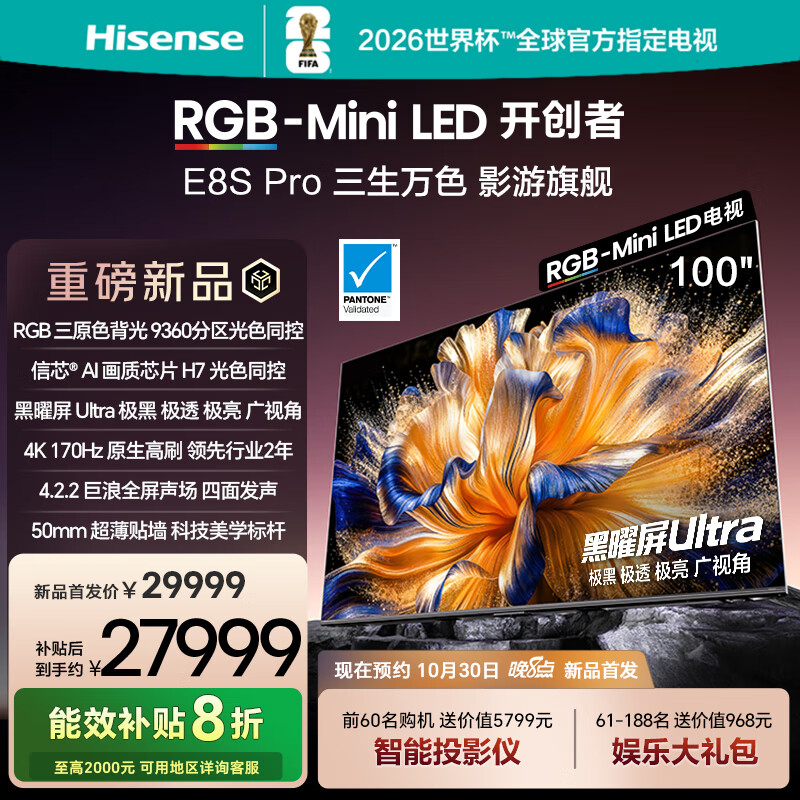 海信电视 E8S Pro 100 吋,售价 29999 元。