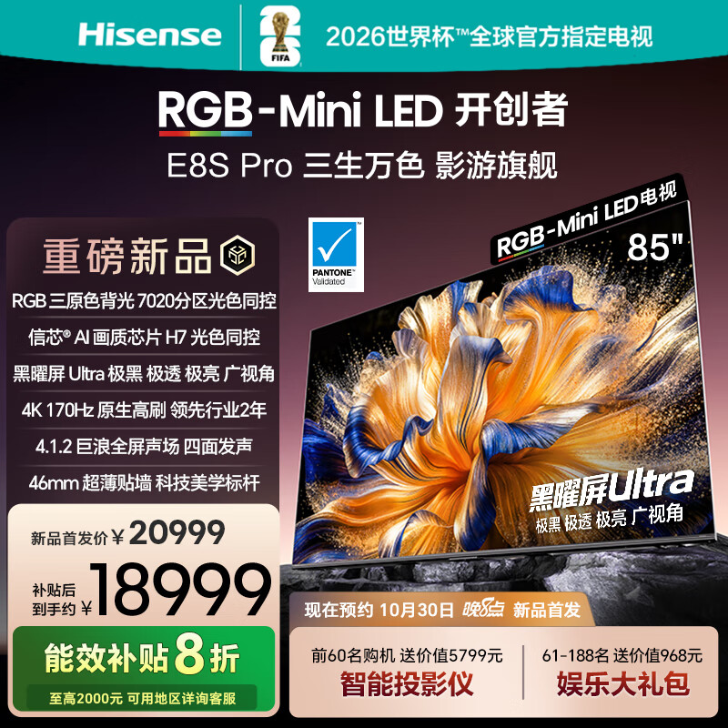 海信电视 E8S Pro 85 吋,售价 20999 元;