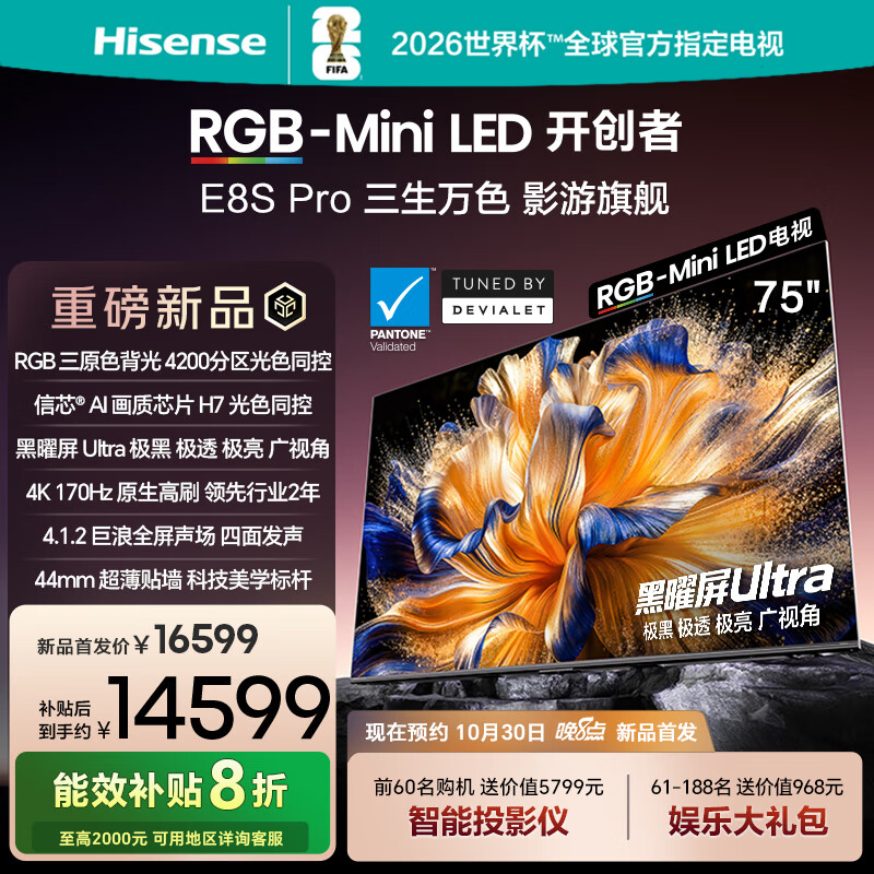 海信电视 E8S Pro 75 吋,售价 16599 元;