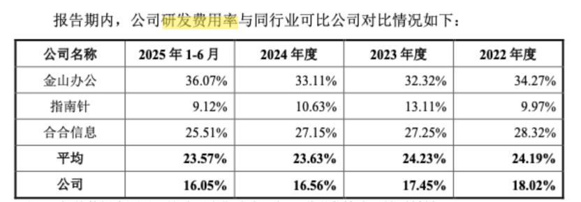 招股书表示,报告期各期间内,公司研发费用率维持在可比公司的范围之内,与可比公司不存在重大差异。