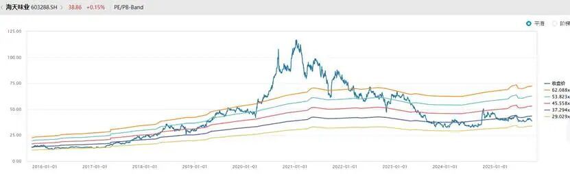 如果仅看2021年高点至今,海天味业已下跌近7成。其股价下跌的过程,不过是“业绩下滑+估值收敛”戴维斯双杀的结果。