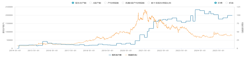 并且有意思的是,从海天味业的股东户数演变来看,在下跌的过程中,即2021年开始,不断地有散户进场,股东户数在2023年9月末创新高,较股价高点2021年2月末的10.37万,基本翻倍了。