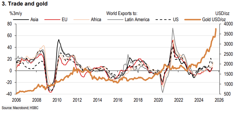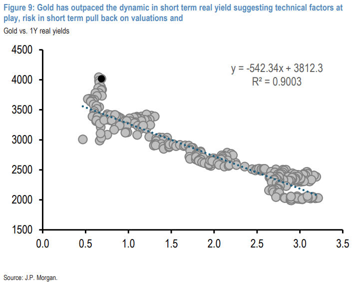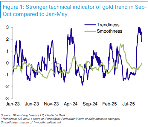 MikeDolan在10月14日的文章中指出,这轮黄金牛市的异常之处在于,金价持续攀升的同时,美国及全球股市自4月以来大幅反弹,不确定性指标有所回落。尽管特朗普重返白宫后的贸易担忧和地缘政治风险曾合理解释了今年初的黄金需求激增,但当股市从低点强劲复苏、市场情绪趋稳后,黄金的涨势却未见放缓。华尔街主要投行仍在竞相上调金价预测目标。高盛预计到明年底金价将再涨20%,法国兴业银行认为金价升至5000美元"愈发不可避免",摩根大通则将做多黄金列为其"最强信心的跨资产观点"之一,这种一致性预期往往是泡沫的典型特征。值得警惕的是,黄金的走势正与美股等高风险资产高度相关。在理论上,黄金应在市场风险上升时走强,而在风险偏好回升时走弱;但如今,股市与金价齐飞,黄金的“分散化”功能正在削弱。如果股市因某种原因陷入暴跌,黄金还能否发挥避险功能,已成为一个悬而未决的问题。避险逻辑遭遇悖论?文章指出,全球贸易担忧和地缘政治风险,或许在特朗普今年1月重返白宫后的最初阶段,确实可以合理解释投资者对实物黄金作为避险或资产多元化工具的强劲需求。全球宽松的财政与货币政策,包括对美联储及其他央行独立性的威胁,也加剧了全球通胀担忧,压低了实际利率,从而让这种零收益的贵金属显得更具吸引力。此外,特朗普政府公开表示希望削弱美元,因为它认为美元被高估了。但是自年中以来,经济政策与地缘政治不确定性指数均已下降,黄金却几乎未曾停歇。这种与传统避险逻辑的脱节,正在引发市场警惕。不过,据见闻文章写道,美国银行全球商品团队在最新贵金属市场报告中指出,白宫“非传统政策框架”将持续利好黄金,包括财政赤字扩大、债务上升、削减经常账户逆差的意图,以及在通胀率约3%的环境下推动降息。此前,美银分析师首席投资策略师Michael Hartnett强调,美联储政策变化预期、政府刺激政策,以及可能到来的黄金重估(类似1934年和1973年)都将支撑货币贬值交易。基于过去四轮牛市的平均表现,黄金价格在43个月内平均上涨约300%。另外,与股票估值不同,黄金的定价没有公认的估值标准。黄金在五年内翻倍,在过去十年中上涨超过250%,但何时算"涨过头"并无定论。拥挤交易或现矛盾信号Dolan称,由于没有公认的估值模型,像其他大宗商品一样,黄金的多头逻辑主要取决于供需关系。推动这股力量的,是各国央行持续买入黄金以实现储备多元化,以及黄金ETF等交易基金的持续吸引——越来越多寻求避险的普通投资者,正在寻找比长期政府债券更可靠的对冲工具。央行的需求似乎是结构性且稳定的,因此预测机构在未来模型中仍会把它计入影响因素,哪怕金价已经因"预期中的买盘"而提前上涨。问题是,这种需求会在哪里结束?私人投资者的需求则更加令人困惑。根据美国银行每月对全球资产管理人的调查,"做多黄金"在9月被认为是仅次于美国大型科技股的第二大拥挤交易。然而,仍有超过三分之一的受访者完全没有黄金配置,而那些配置了黄金的投资者,其平均权重仅为4.2%。文章指出,这种矛盾信号,既被视为拥挤交易,实际配置却相对有限,增加了市场判断的难度。三大信号让人警惕黄金这种抛物线式的上涨仍然开始让人警惕,主要有三个迹象:上涨速度过快;与市场不确定性指标逐渐脱节;与实际利率和美元走势出现背离。摩根大通指出,黄金近期的飙升已远超通常由一年期实际利率下降所能解释的涨幅。理论上,当其他"安全资产"的实际回报率下降时,黄金就变得更具吸引力。