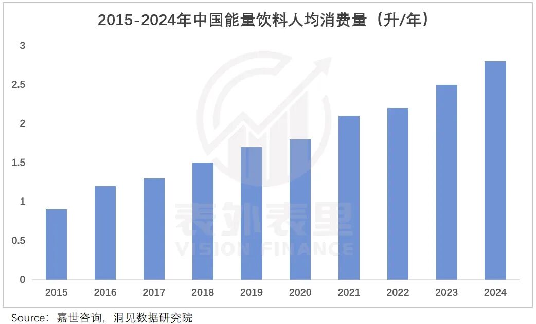 庞大的“清醒需求”下,作为“牛马兴奋剂”的能量饮料,销量、人均消费量节节攀升:2015年,国内每人每年平均约喝“4瓶红牛”;去年,这一数字逼近“10瓶”。