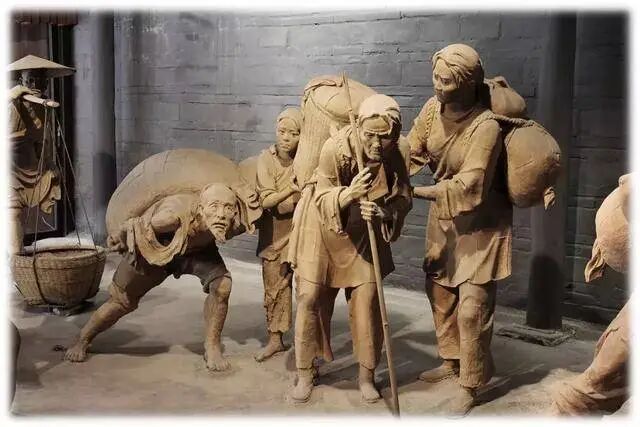 为了赶国庆,他们四个半月就干完活。群雕有114人,道具108件,分交租、验租、过斗、算账、逼租、反抗、上山打游击7部分,26个情节,全长近100米。传统泥塑手法加上黑玻璃球做眼珠,箩筐、鸡公车、谷风机等直接当成现成品,没错,要的就是超级写实主义。