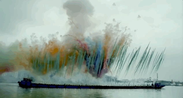 APEC峰会烟火,比较接近大众审美,并没有那么强烈的“蔡国强”风格