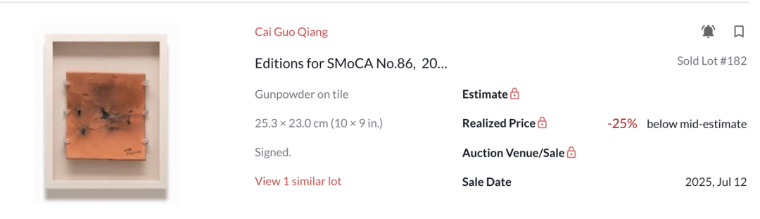 在2025年,蔡国强“流拍”和“低于预估价格”的作品,加起来已经超过一半以上了。