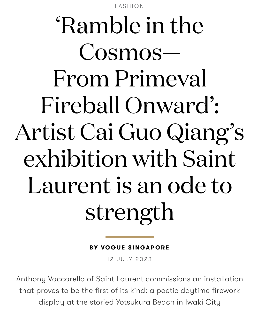 商业品牌作为赞助方的引力,则是强烈而交易性的:品牌名称“圣罗兰”在S级杂志《VOGUE》上反复被cue到,粉色的白日焰火在晴朗的海滩上绽放,而这片海滩刚刚走出核泄露事件阴影—— 这一切充满了故事性,诗意,叙事宏大,宾主尽欢。