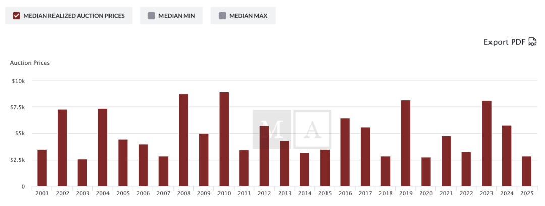 然而,若我们转换时视角,从雪山的烟雾,移向拍卖市场的K线图,或许会发现,这场艺术豪赌的引信,早在几年前就已悄然点燃。