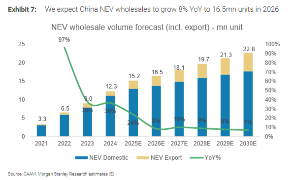 报告指出,政府的补贴政策在明年仍具有不确定性。不过,新能源汽车销量有望同比增长8%,出口销量也预计将同比增长4%。
