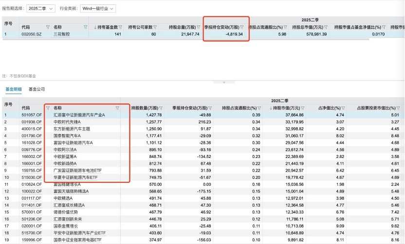 从公募持仓来看,公募基金在今年二季度显著减少了对三花智控的持仓。