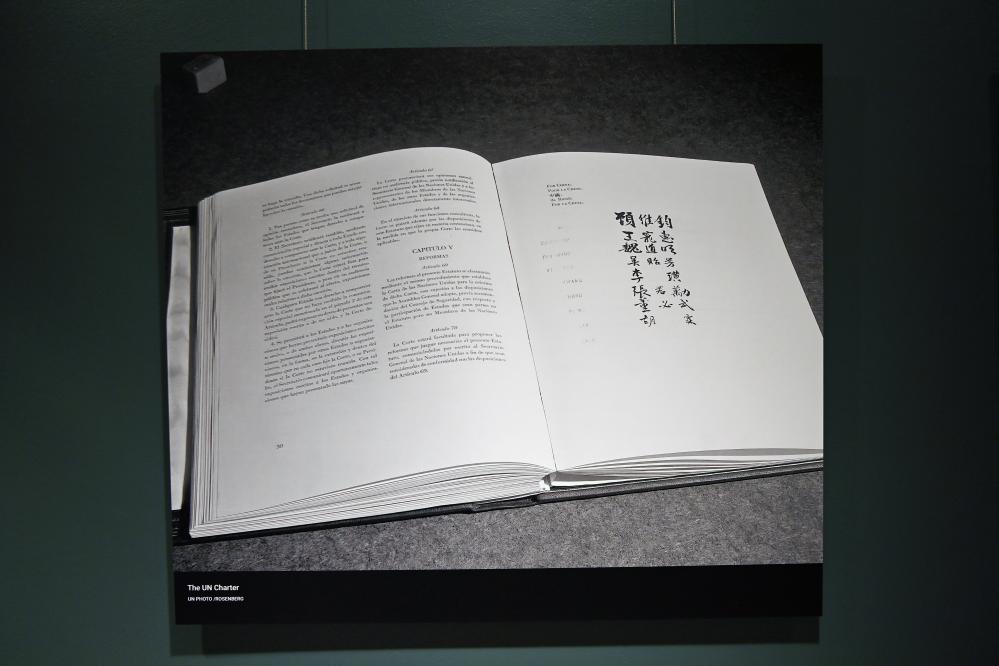 这是9月18日在位于纽约的联合国总部拍摄的“重振旧金山精神”展览的《联合国宪章》。