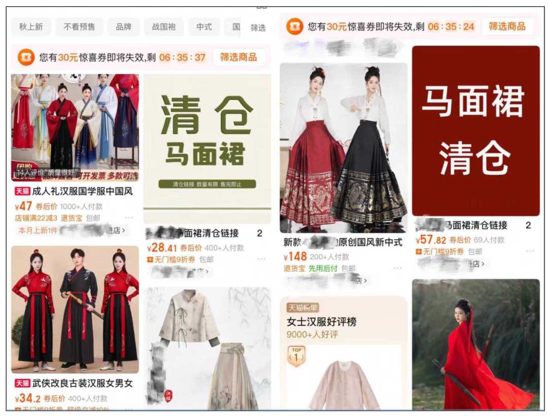 一位在河北某地经营一家汉服网店的店主刘哥,在年初便对汉服的降温有所体会,他感叹,没想到汉服,尤其是马面裙仅仅只爆火了一年多时间,便开始在年轻人心中“失宠”。