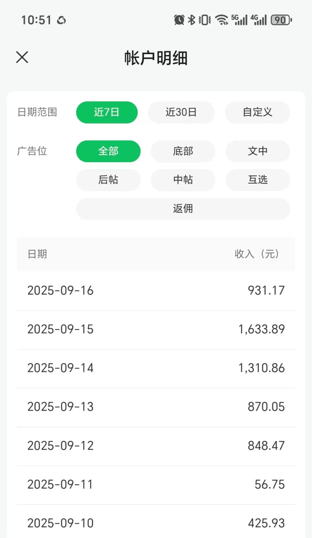 这是我本周的收益数据,我相信这只是我的起点。