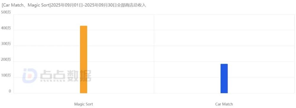 从留存数据上看,“Car Match”的表现也的确很不错,虽然D1留存还比不上“Magic Sort!”,但是D7以后全面领先,也大大领先于“Block Jam 3D”。值得注意的是,“Magic Sort!”和“Car Match”一样都是iOS端目前流水明显高于Google Play,但“Magic Sort!”