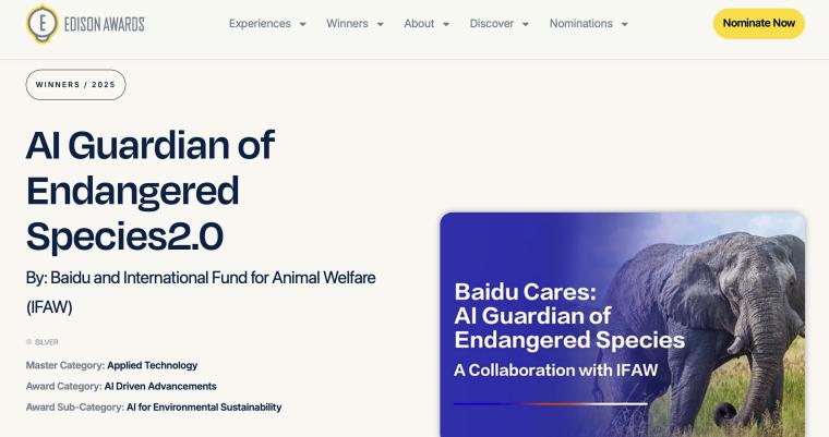 🏆 **百度AI守护官荣获国际大奖**:百度凭借其“濒危物种AI守护官2.0”项目,在第25届爱护动物行动奖(Animal Action Award)上被授予“年度创新实践奖”。该奖项旨在表彰在动物保护和福利领域,通过创新技术和解决方案取得显著成效的先锋。此次获奖标志着百度在利用人工智能技术推动野生动物保护方面取得了国际认可。
