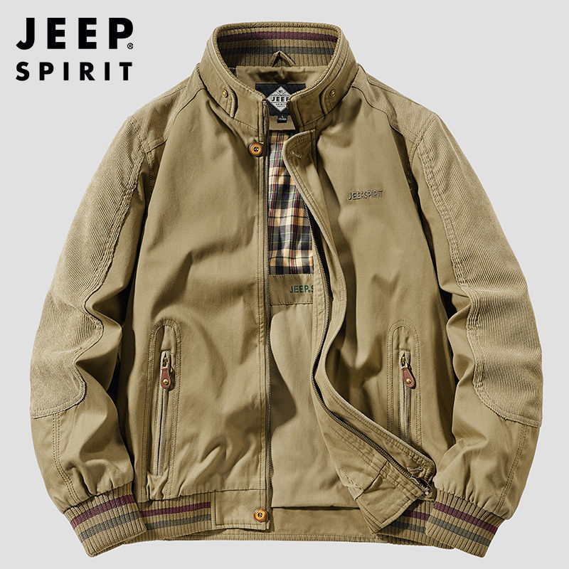 JEEP SPIRIT 男士纯棉水洗休闲夹克,经典美式风格设计,选用高品质纯棉面料,经过水洗工艺处理,质感柔软透气,穿着舒适有型,不易起球不易变形,适合春秋季节日常通勤或户外休闲穿搭。夹克版型挺括,细节做工精细,金属纽扣与实用口袋设计兼具美观与功能性。