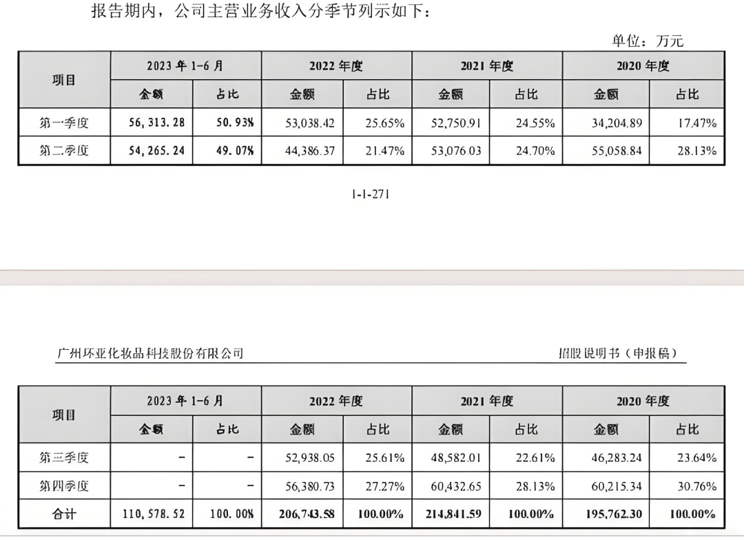 (图 / 环亚科技招股书(上)、珀莱雅2022年财报(下))