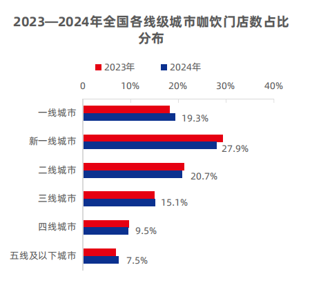 据红餐大数据显示,与2023年相比,2024年咖饮门店在三线及以下城市的占比提高了0.6个百分点。瑞幸咖啡、星巴克、幸运咖、库迪咖啡、NOWWA挪瓦咖啡等品牌均有下沉扩张的举措,例如库迪咖啡发起的“百城千店”促销活动已覆盖了上百个地县级城市,NOWWA挪瓦咖啡通过“早鸟计划”补贴下沉市场的咖饮创业者。